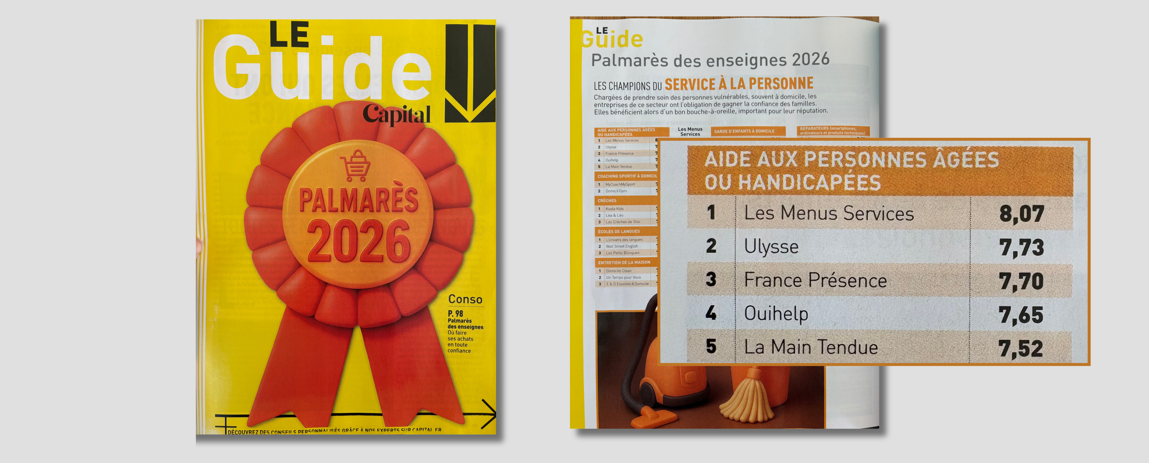 Dans le cadre de l’enquête de satisfaction réalisée par Capital et le bureau d'études Statista, Ouihelp trouve sa place sur le podium des enseignes les plus recommandées parmi les services d'aide à la personne. Cette distinction met en lumière la qualité de notre service à domicile, mais également de l'engagement de nos équipes au quotidien auprès des personnes dépendantes. Avec une note de 7,48 en 2025 et 7,65 en 2026, Ouihelp, en plus d’être cité comme l’une des meilleures enseignes de l’aide à domicile, voit sa note progressée en une seule année.